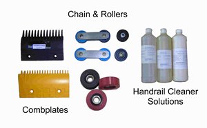 Escalator Accessories Such as vulcanising kit, tools, comb plate, step and chain rollers, inserts, sprockets |